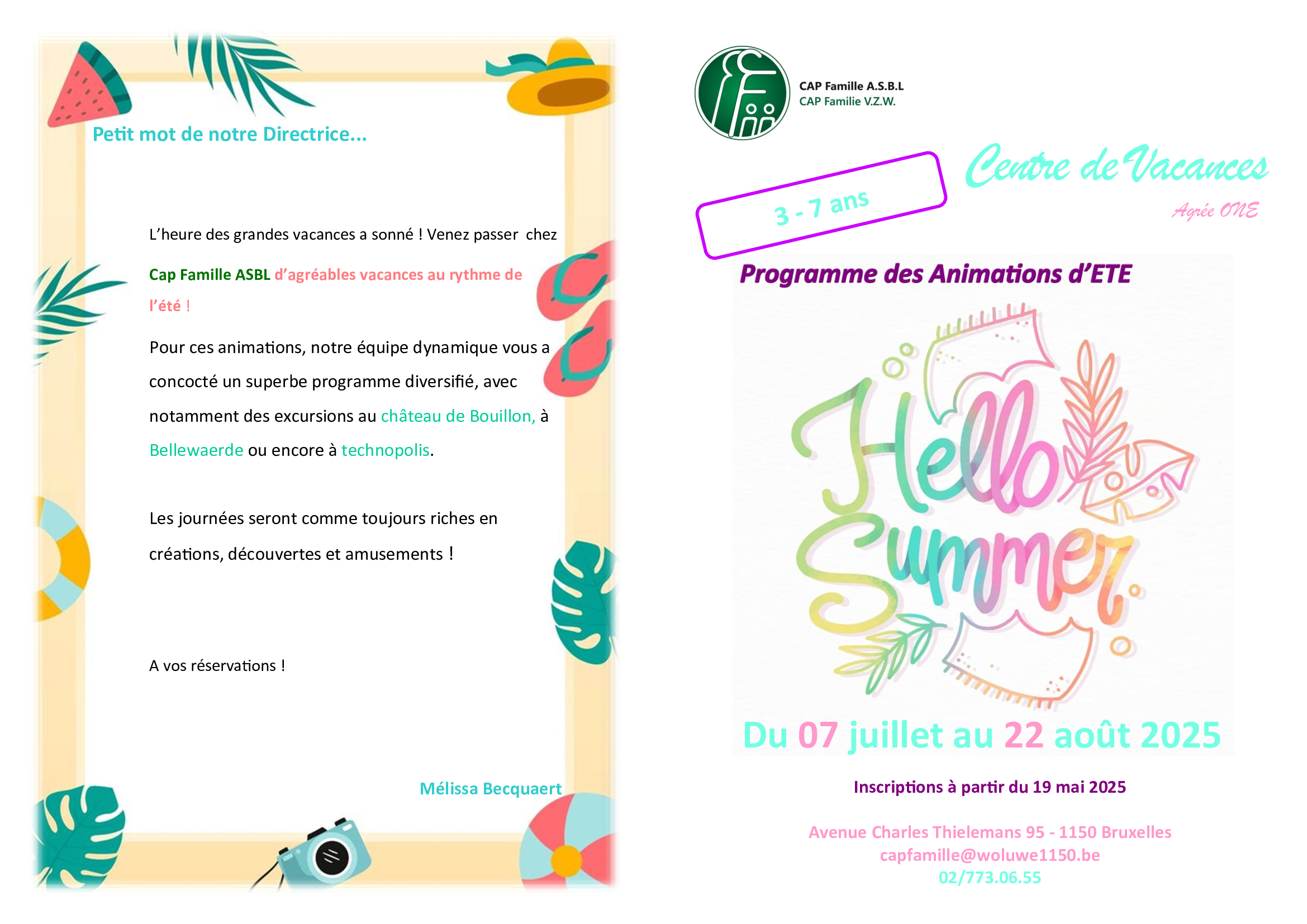 Centre de Vacances pour les 3 – 7 ans